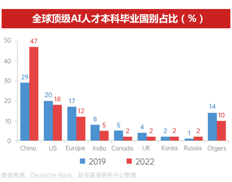 當前全球頂級AI人才中,近五成是在中國完成本科教育。得益于龐大的大學(xué)生基數(shù)和長期的理工教育投入,中國當前AI科研論文成果“一騎絕塵”。