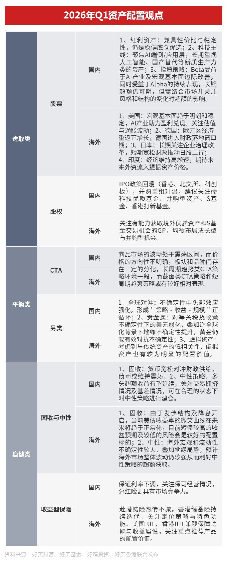 以配置為翼,與時代同行。接下來,就讓我們具體看一看2026年一季度各類資產(chǎn)的配置思路。