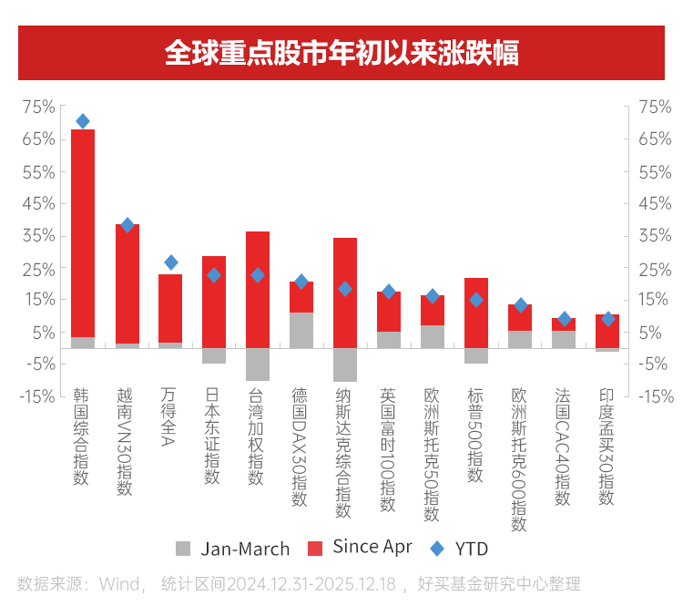 2025年年初以來,全球主要股票市場普遍呈現(xiàn)上漲趨勢。按關(guān)稅時點分開來看,實際關(guān)稅政策與市場預(yù)期差異(即"關(guān)稅預(yù)期差")差越大的市場,反彈幅度相對更大。