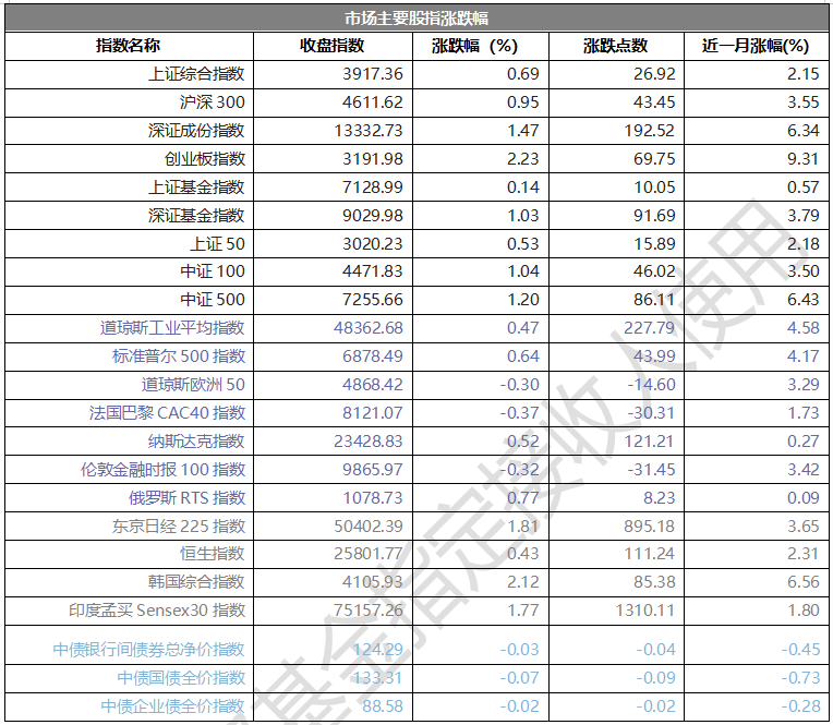 昨日,滬深兩市雙雙收漲。截止收盤,上證綜指收于3917.36點,漲26.92點,漲幅為0.69%;深成指收于13332.73點,漲192.52點,漲幅為1.47%;滬深300收于4611.62點,漲43.45點,漲幅為0.95%;創(chuàng)業(yè)板收于3191.98點,漲69.75點,漲幅為2.23%。兩市成交18619.40億元,較前一日成交額增加7.88%。小盤股強于大盤股。中證100上漲1.04%,中證500上漲1.20%。